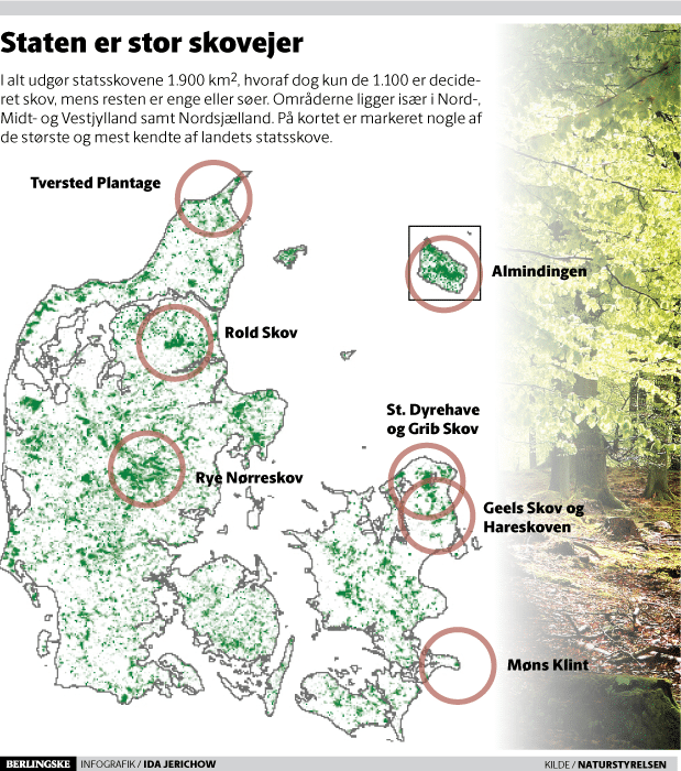 | At 89 mio. kroner i naturpakken ikke er nok, og at man derfor skal sælge statslige skove til private.At private skovbrugere vil kunne øge produktiviteten sammenlignet med Naturstyrelsen.