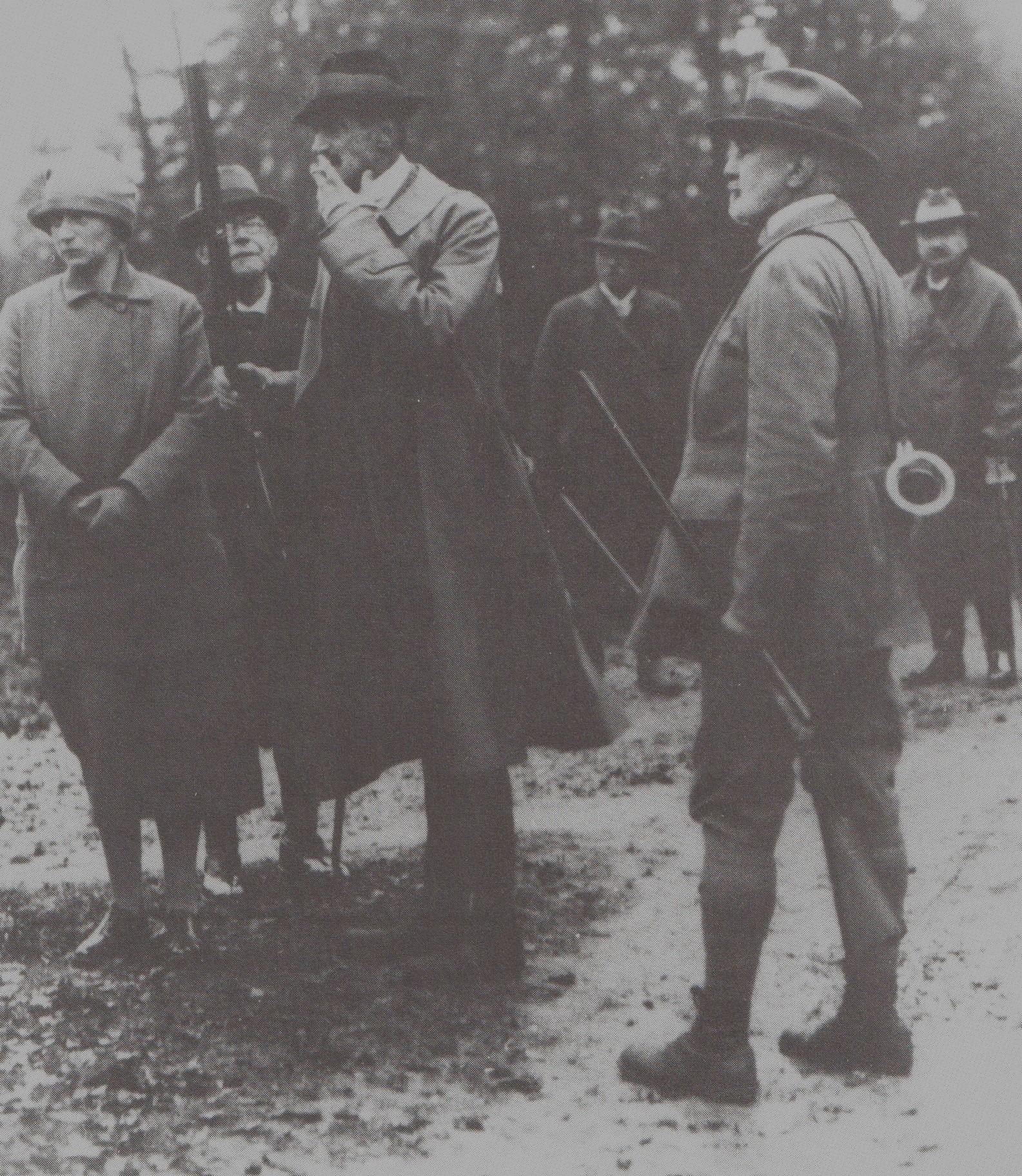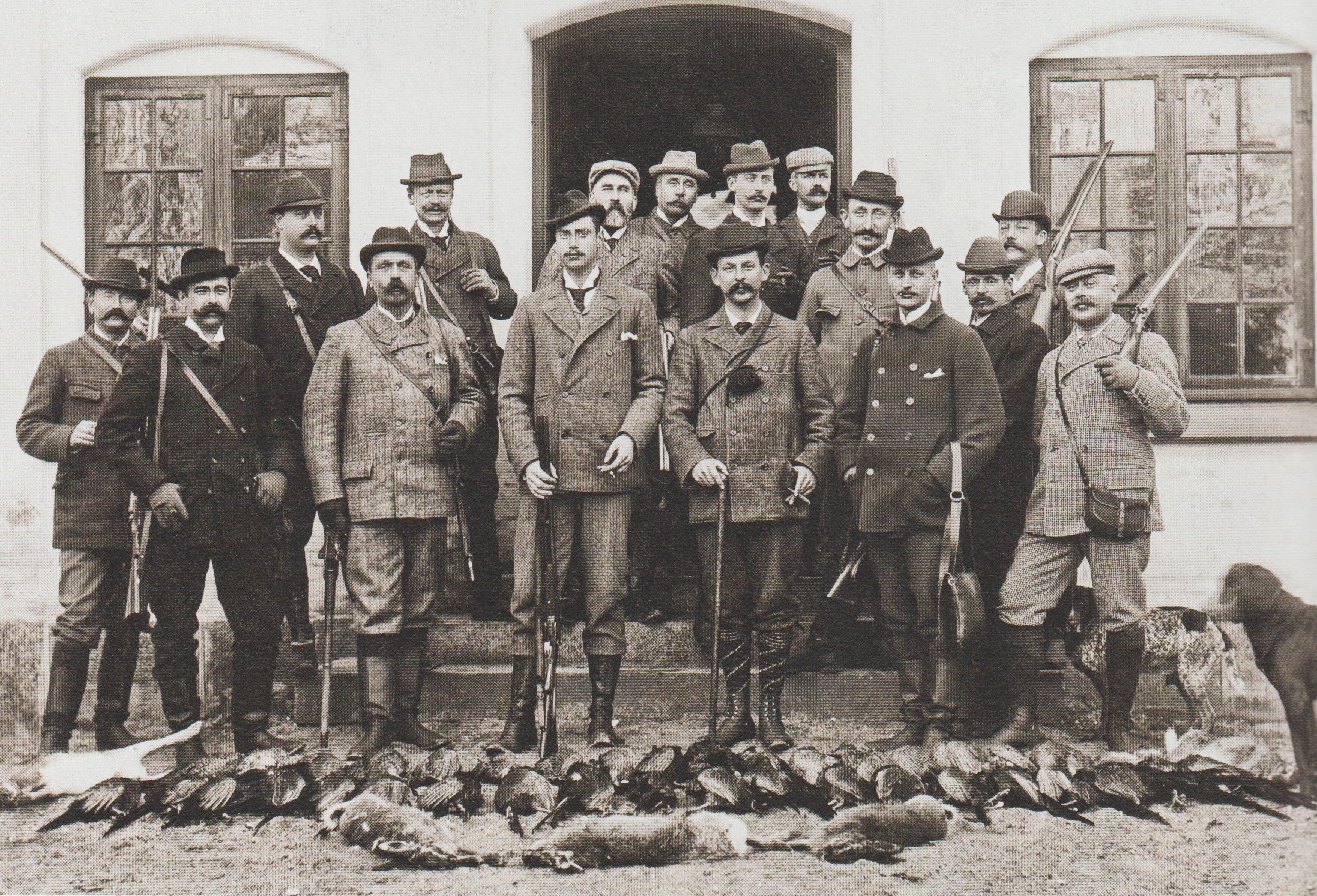 Mens de tre tidligere jagtorganisationer eksisterede frem til 1992, stillede en dansk godsejer i flere år sit revir til rådighed for Dansk Jagtforening, som her inviterede folketingsmedlemmer på jagt.