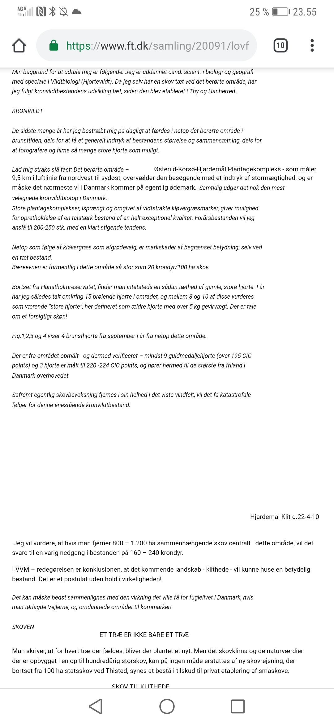 At kalde det et karaktermord er nok lige i overkanten, men med dette opslag fra dig i 2010 (vedhæftet fil) konkluderer du, at der vil være ca. 10 stk. kronvildt i området efter trærydning til testcenter. Jeg påpeger jo blot, at du tog fejl.