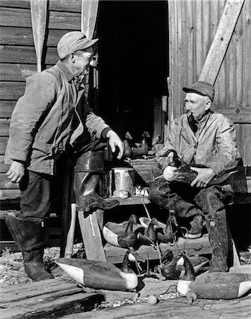 Lokkefugle havde enorm betydning for ande- og gåsejagten, og mon ikke disse to jægere der poserer med nogle af deres lokkere, taler om lokkernes betydning.