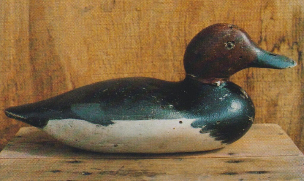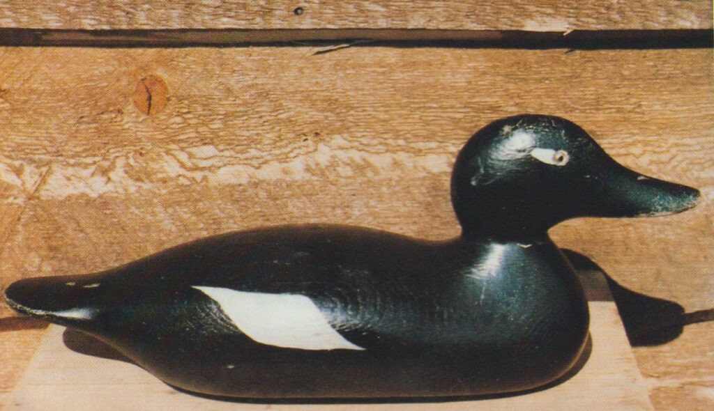 Mason fremstillede lokkefugle til andejagt i flere klasser. Denne bluebill andrik med glasøjne, hvid blis ved øjet og hvidt vingespejl er en typisk lokker fra Første Klasse.