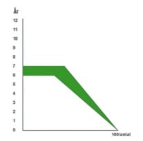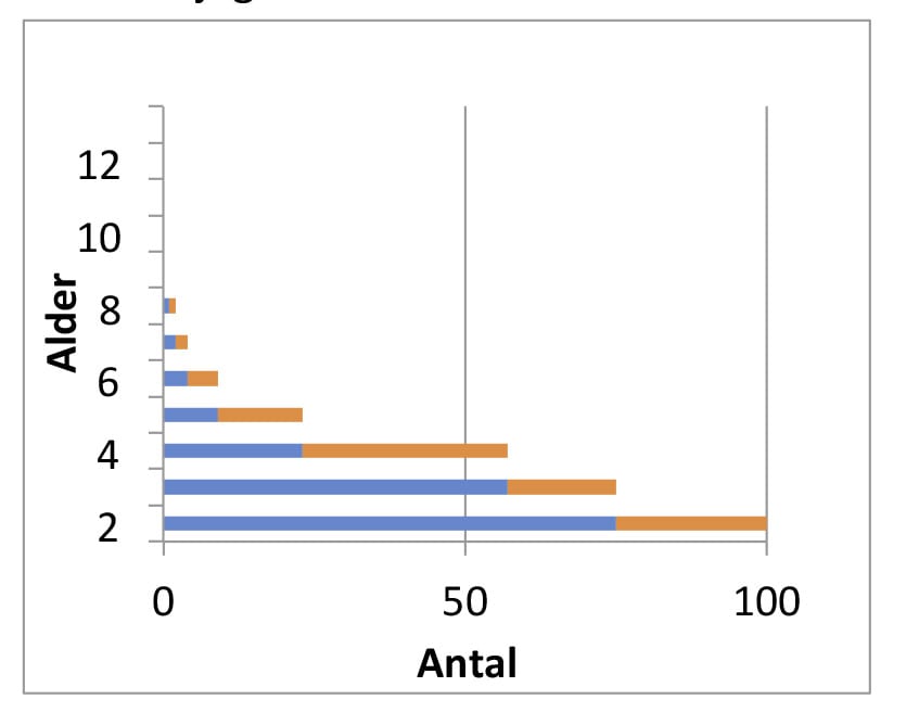 Bestanden vokser i hver årgang, og øgningen vises ved grøn farve.