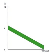 Fig. 1 viser på fortræffelig vis, hvorfor totalfredning af de ”svage” A -hjorte (Grøn felt) og placering af den samlede afskydning på de ”stærke” B – hjorte (Rød felt) er så ødelæggende. (Skillelinjen kan naturligvis frit placeres ved 8 -, eller 6 – ender i stedet.