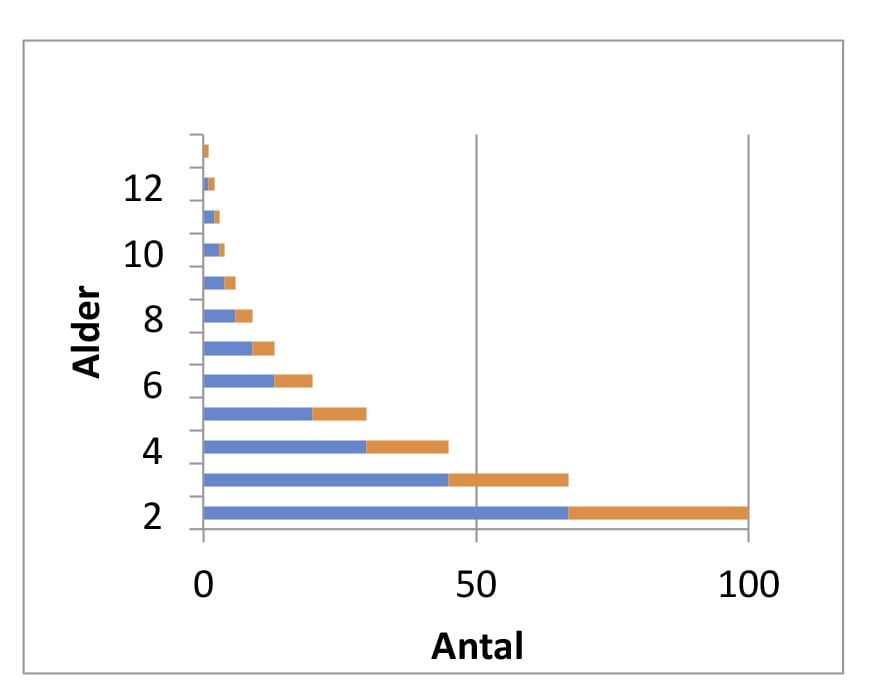 Da vi ønskede en uændret bestand kan dette kun imødegås ved hårdere indgreb i aldersintervallet 1 -3 år.
