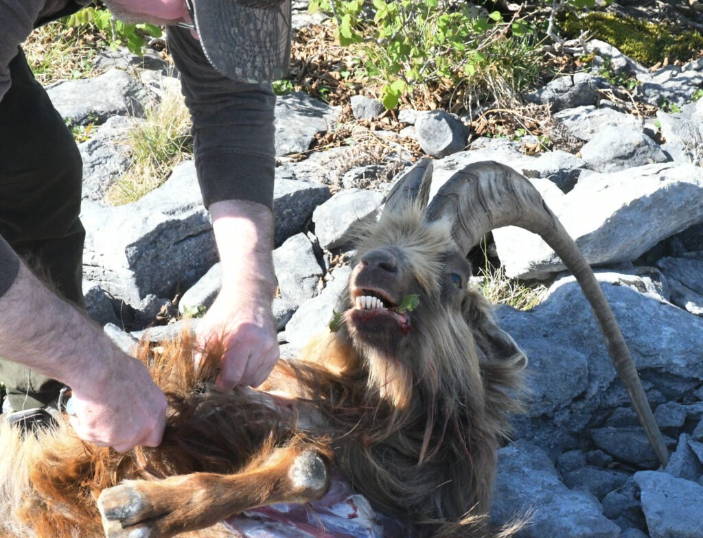 På dette billede fornemmer man tydeligt styrken i den nedlagte vildgeds meget stærke horn.