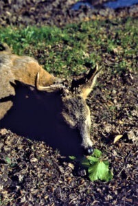 ”Det må være sådan, det hænger sammen”, mente skytten, som også mente, at det forklarede, hvorfor bukken havde svælgbremselarver og pelslus, som hidtil ikke var set hos råvildt på godset”.