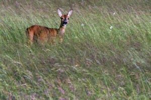 På grund af en jordvold kan jeg kun se hovedet af den, og jeg lister derfor videre til Skabomarksremisen for at få frit skud til bukken, men da jeg når frem, står bukken med synet vendt imod mig og tager straks flugten.