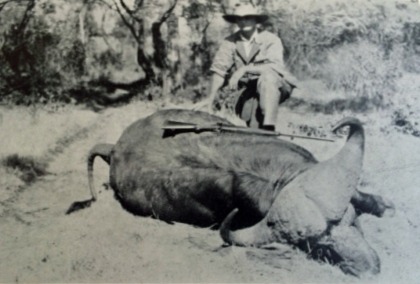 Marcus Daly med nedlagt bøffel, måske mad til sine afrikanske bærere. (”Legends of the African Frontier”, Safari Press)