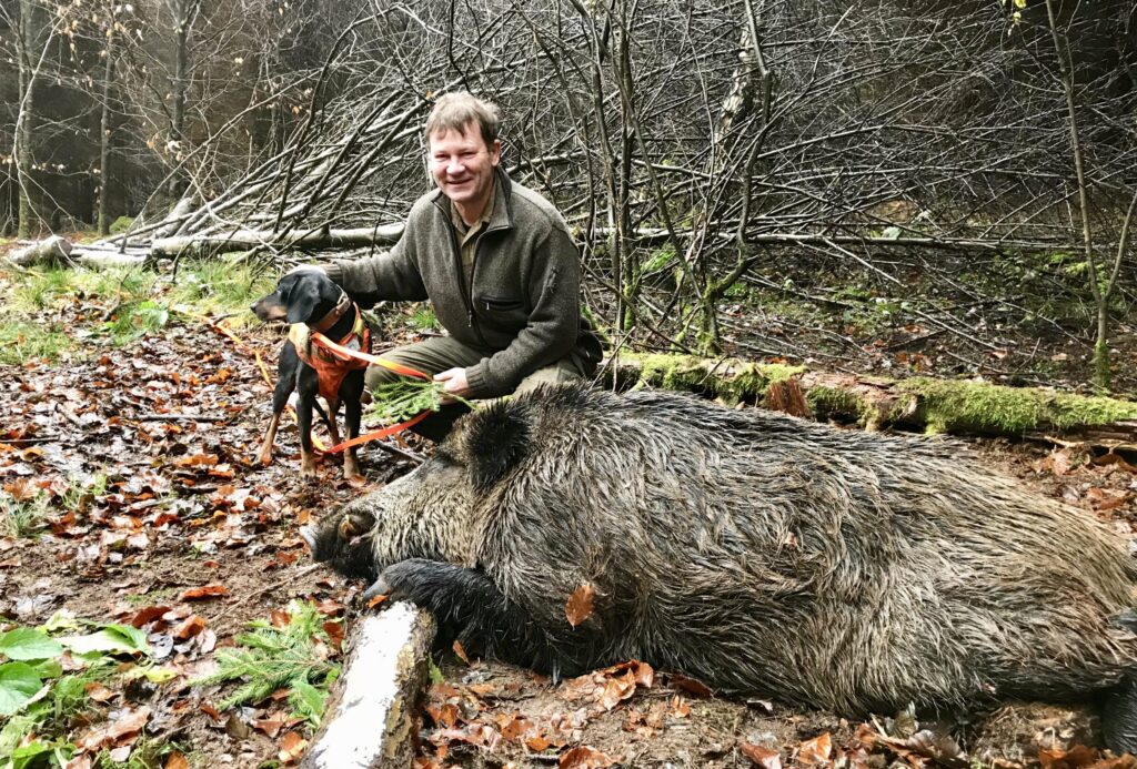 Keileren var løbet omkring en kilometer, og havde så lagt sig under en kvasbunke tæt på en skovhytte. Hundeføreren havde ingen problemer haft med at følge sporet med sin dygtige Brandenbacher. Men da han nåede frem til grisen, var den i høj grad stadigvæk i live. Den gik øjeblikkeligt til angreb, og hundeføreren pumpede 5 skud i den fra sin 9,3×62’er, før han turde nærme sig.
