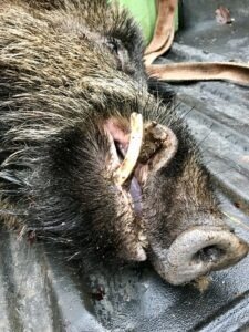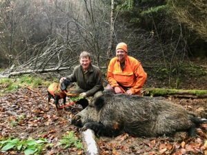 Vi andre tog til gengæld på en tur mere i skoven denne aften, hvilket resulterede i endnu en überlaufter til Johan og en rigtig fin 70 kilo gris til Frank. Så to grise til hver på sådan en jagttur – så bliver det altså bare ikke bedre.