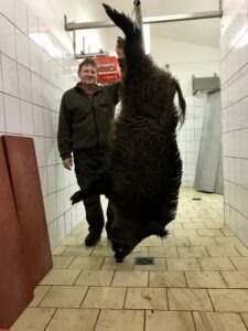 ”Den er over 120 kilo – ein Hauptschwein ”, sagde han så endelig og klaskede sig på låret.