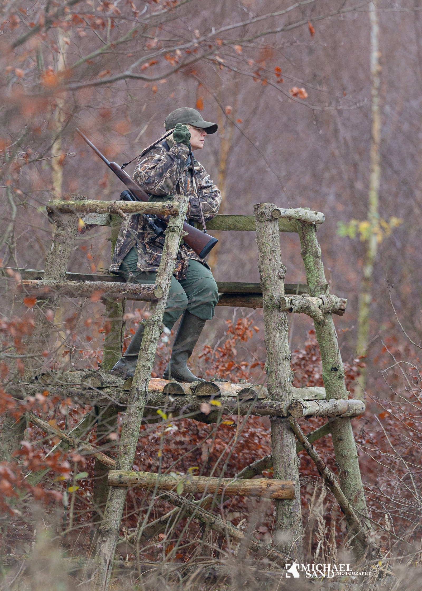 Anstandsjagt, hvor jægeren forholder sig afventende og udnytter vildtets naturlige bevægelse, praktiseres især fra skydestiger og jagttårne.