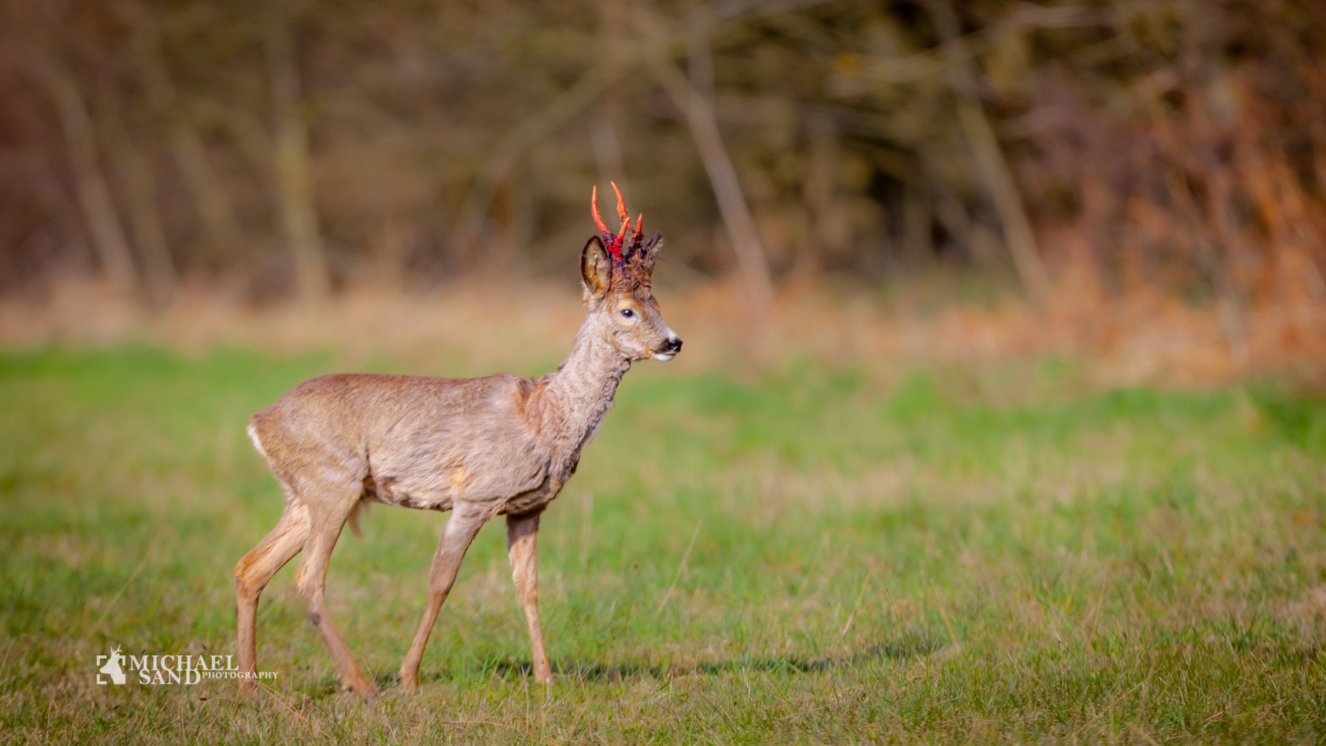 Over de næste dage vil bukken fortsætte med at feje og dens kontakt med plantesaft fra især træer og buske, giver sammen med jord og størknet blod fra basten opsatsen sin særegne farve.