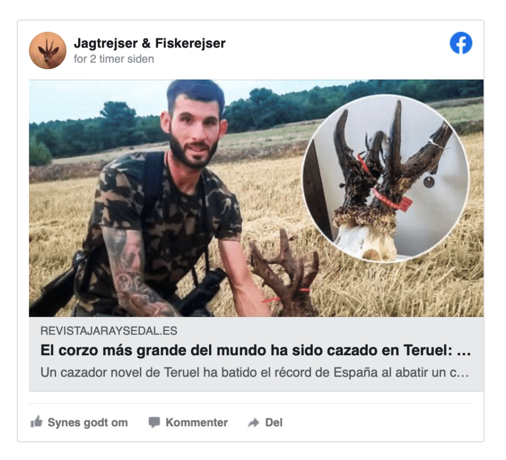 Med til historien hører, at opsatsen fra den buk, som Sergio Muelas skød i 2016, scorer 250 CIC-point, og dermed er nummer to på den spanske rekordliste, og også overhaler den svenske verdensrekord på 246,9 CIC-point.