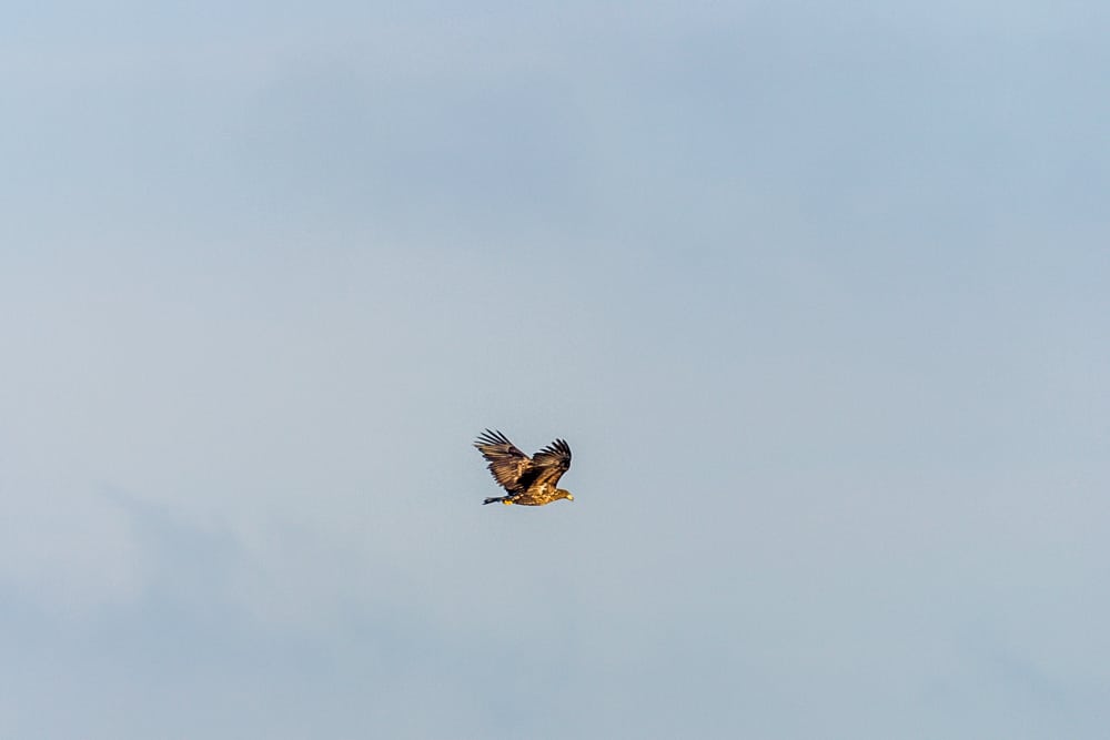 De mange ørne, der netop nu opholder sig i det danske vinterlandskab, er formentlig Danmarks “egne” ørne, for i milde vintre bliver Nordvesteuropas ørne i reglen tæt på deres hjemmebaner.