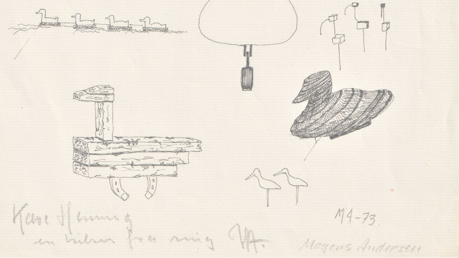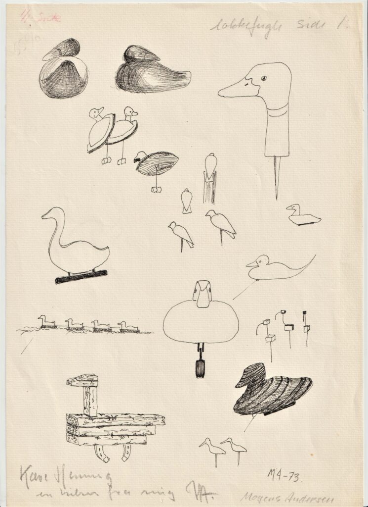 I sit arkiv har Henning Kørvel fundet tegninger af overjæger Mogens Andersen, der går tilbage til 1973. Tegningerne var øremærket til en artikel af Henning Kørvel om lokkefugle