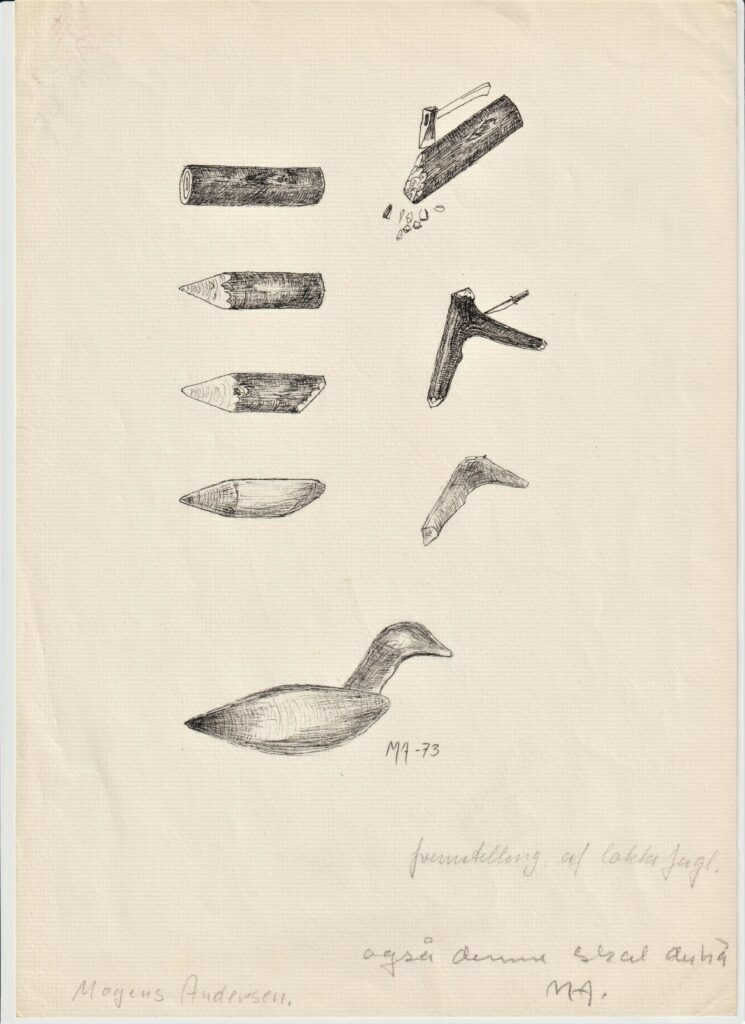 Med en økse og kniv som det eneste værktøj kunne lokkefugle fremstilles på denne måde, mente Mogens Andersen.