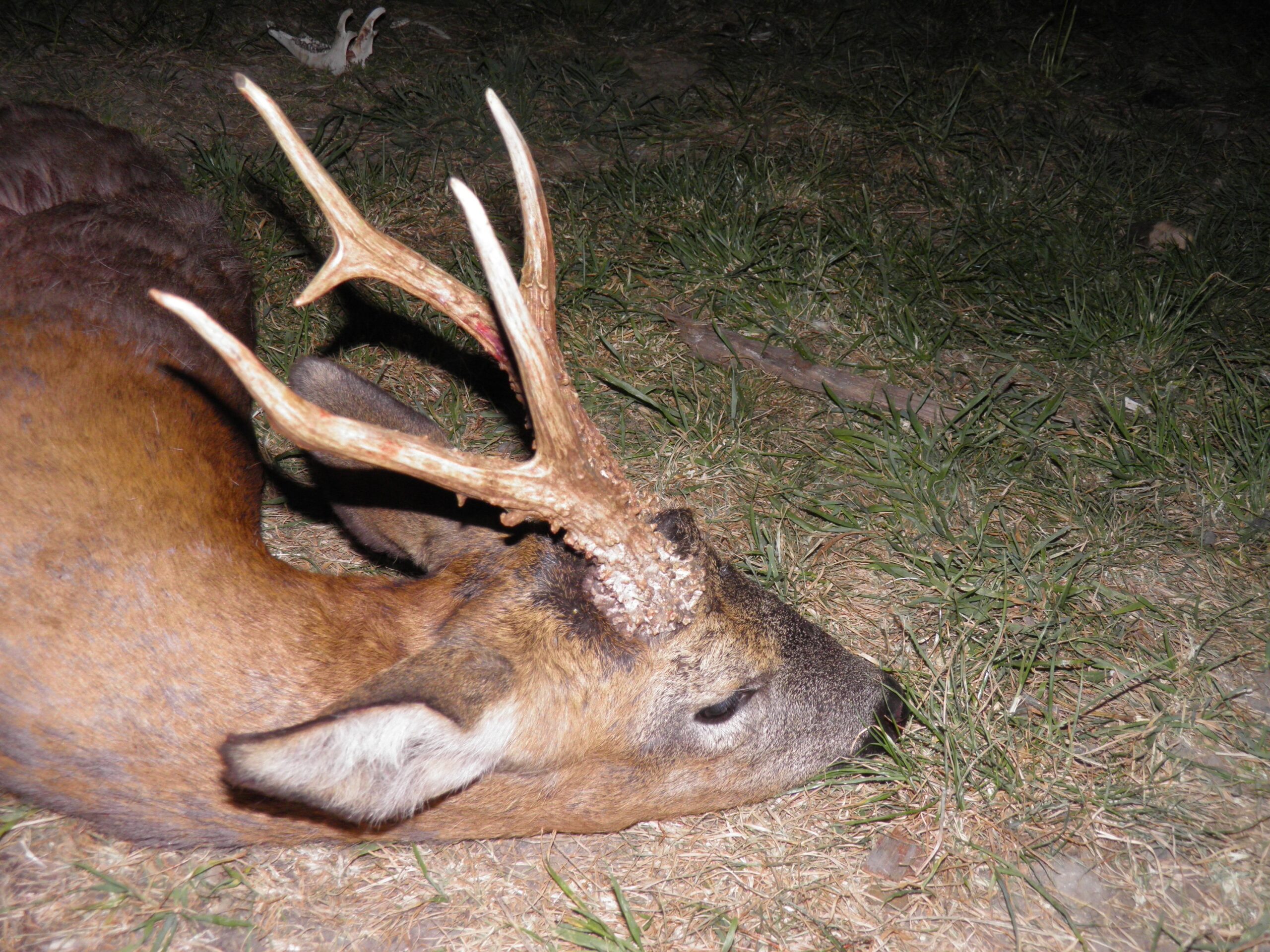 Jeg havde ved lodtrækning trukket en “aftenpost” i en høj stige ud til en stor lysning. Råen kom frem i lysningen ca. ½ time inden solnedgang. Den gav sig til at esse ca. 27 m fra stigen – desværre for langt ude til et forsvarligt bueskud.