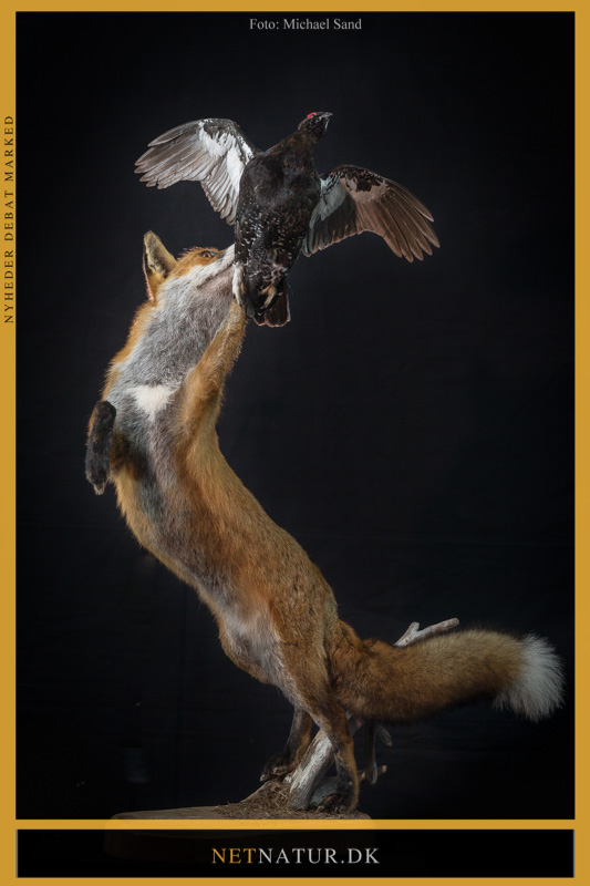 Kranier af ræve afkoges, måles op og tildeles evt. medaljer ligesom det er blevet mere almindeligt at få ræve monteret. Enten som skuldermontering eller som her: En fuld monteret ræv, der springer ud efter skotsk rype.
