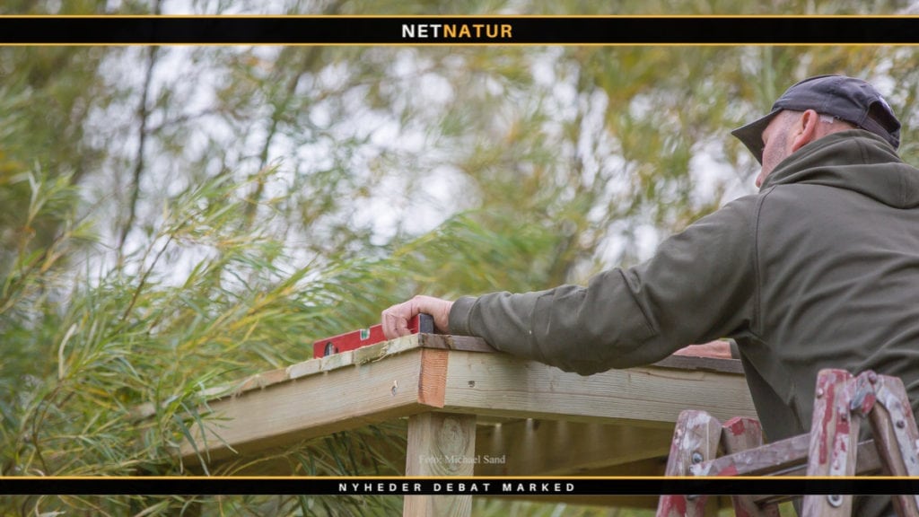 3) skydetårnet skal være udført af træ eller metal, og skydetårnets platform må ikke være forsynet med sider, der måler mere end 110 cm i højden fra platformens vandrette plan,
