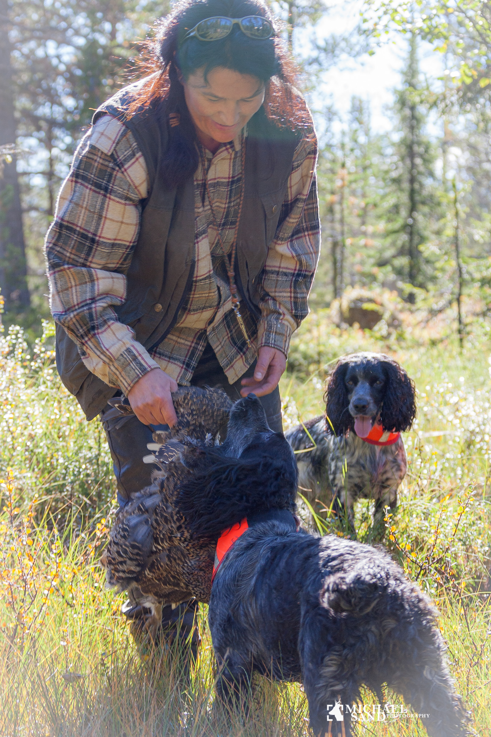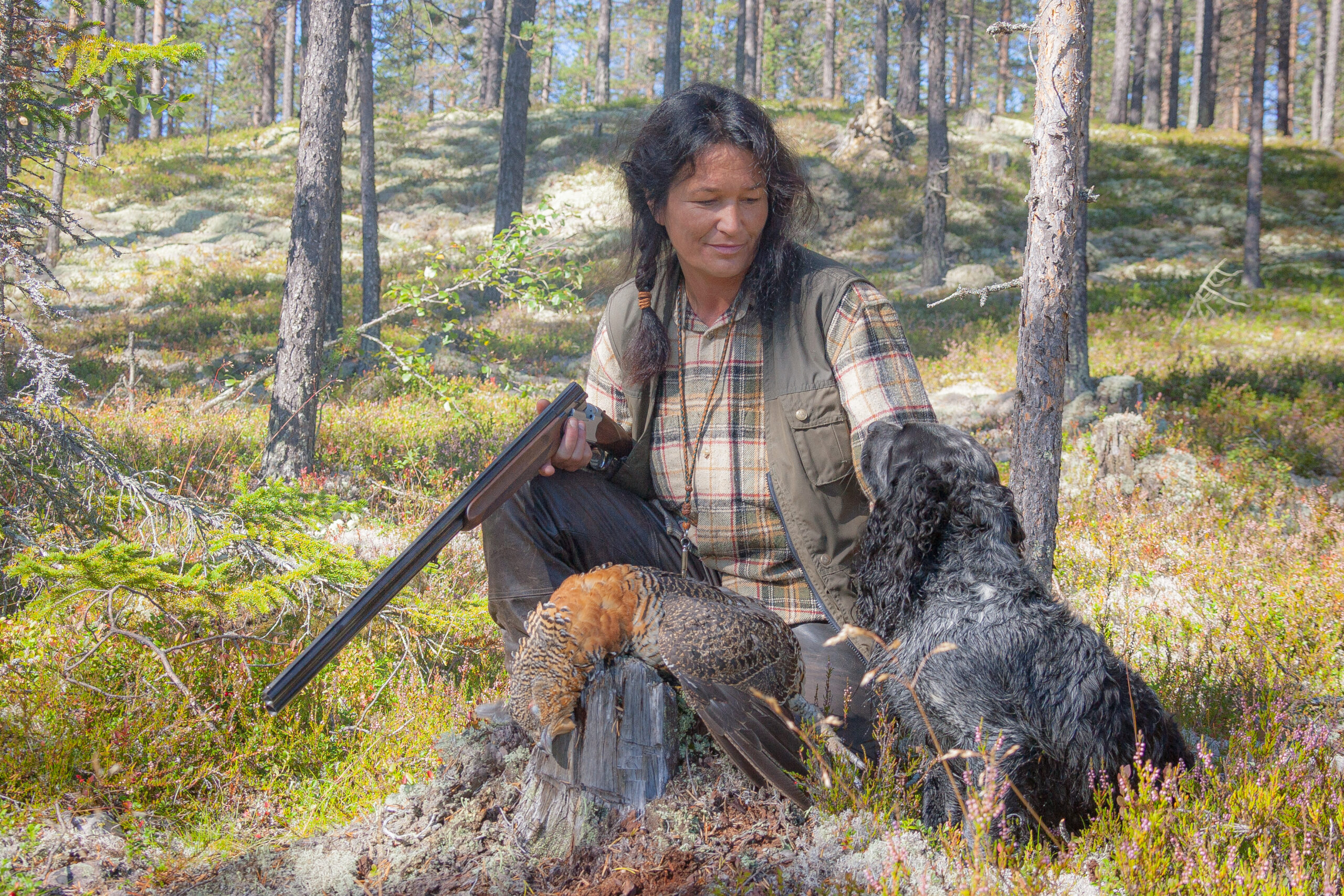 Pigejægeren var tovholder for et lille kobbel spaniels, som havde til opgave at støvsuge bærlyngen for fært af tjur og urfugl. Og rype naturligvis, selv om det kom som en mindre overraskelse, at vi fandt ryper i skovfugleterrænet.
