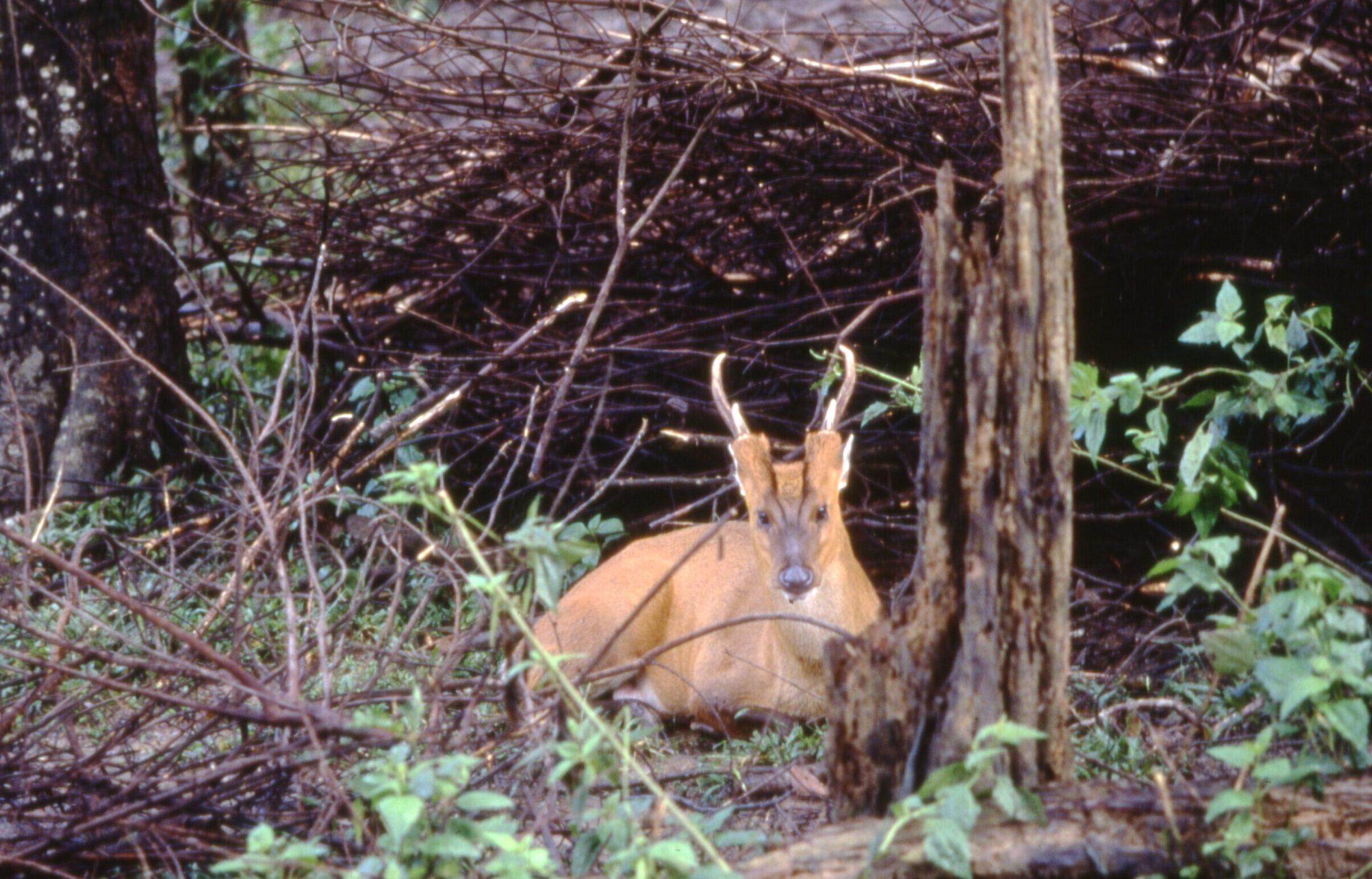 Jeg ved imidlertid, at den også findes her i Laos. Jeg har set et gevir, som kun kan stamme fra en Stor Muntjak! I en landsby tæt på hvor jeg sidder.