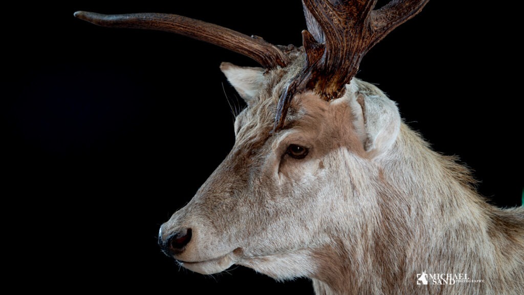Faunaen Indland Jagten Kronvildt Riffeljagt Trofæ Trofæfoto Hvid hjort med hovedpine Hos nordjysk konservator er der udstoppet en hjort, som bemærker sig på andet end den lyse farve