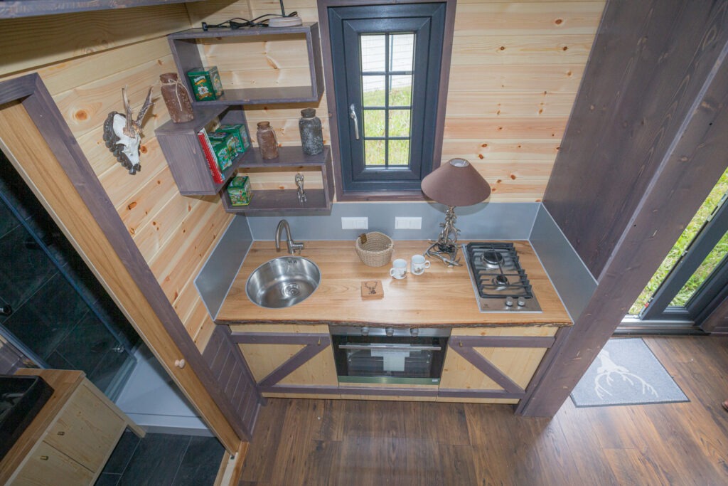 – De fleste vil dog overraskes over, hvor lang tid de kan opholde sig i et Tiny House uden at tænke på hverken strøm, vand eller ekstra gas. Med mindre, der i selskabet er en eller flere med langt hår, der mener de har behov for hårvask og lange bade hver dag, vil man føle sig uafhængig af omverdenen fra man ankommer til man tjekker ud efter måske tre, fire dage …
