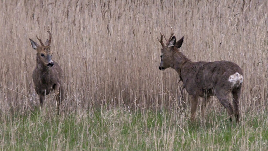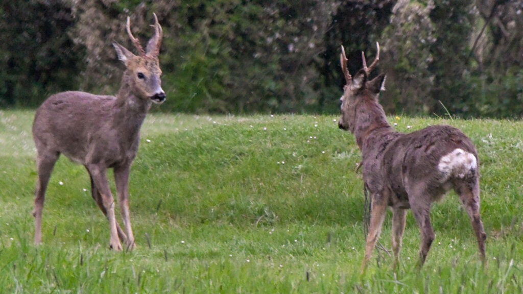 Tovbukken blev territoriehævdende som trteårig, og den ses her (til højre) i færd med at smide rivalen – Bukken med den lange forsprosse – ud af sit territorium.