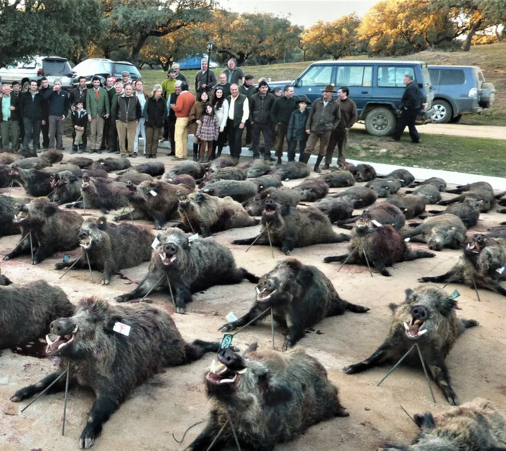 Vildorner skudt under hegn diskvalificeres også af Borrero, fordi de er fra et hegn, og desuden, fordi der manipuleres. Under normale forhold på den frie vildtbane er max. fem procent orner, og på fri vildtbane vil der således aldrig kunne skydes så mange som på fotoet. Foto: Rafael Gutierrez Domingez