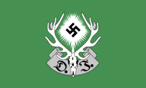 Fra en tidligere tysk jagtorganisation tog Reichsbund Deutsche Jägerschaft kronhjorten til sig som logo, der blev kombineret med bogstaverne, D.J. for Deutsche Jägerschaft.