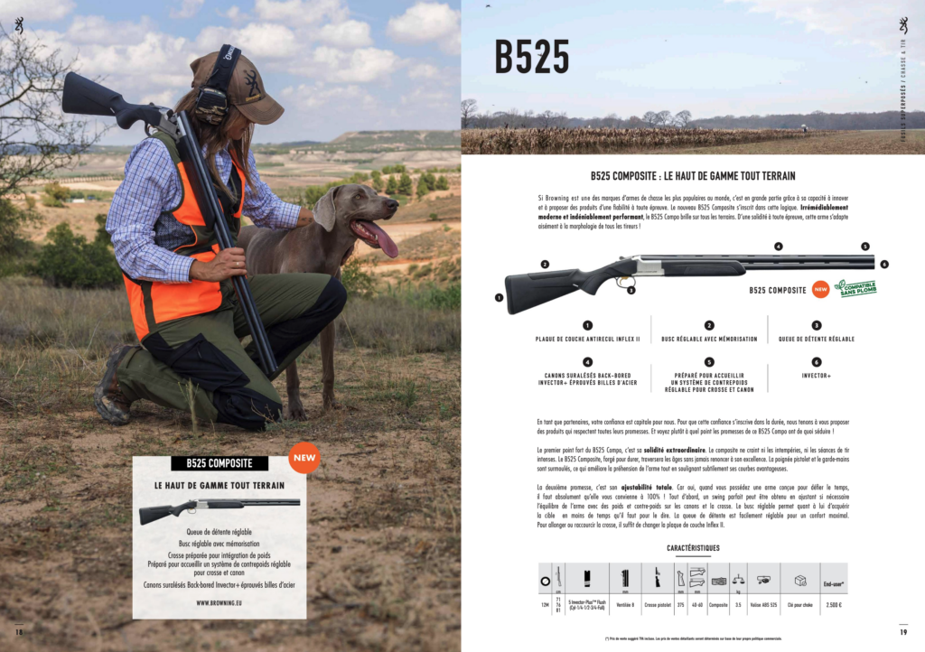 Gå heller ikke glip af den nye B525 Composite Adjustable. Denne over and under er udstyret med et sort plastskæfte, hvilket ikke kun giver den et uforligneligt design, men også gør den endnu mere robust.