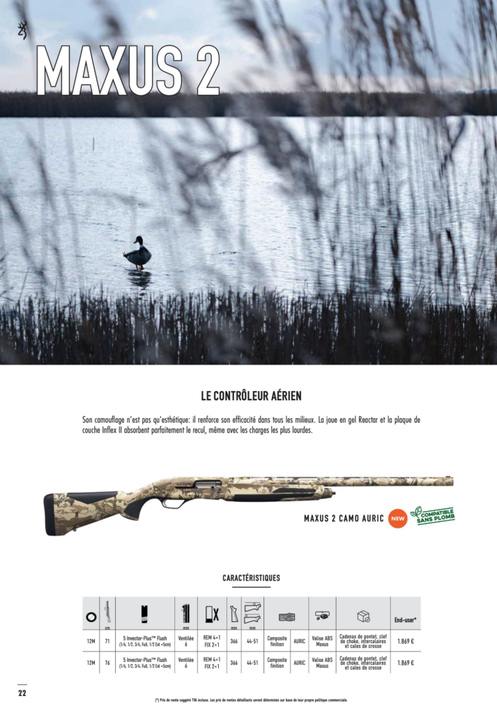 Hvis du foretrækker halvautomatiske geværer, så gå ikke glip af Maxus 2 Camo Auric. Det anvendte camouflagemønster fra USA er særligt effektiv i vådeområder, hvor der typisk jages ænder og gæs.