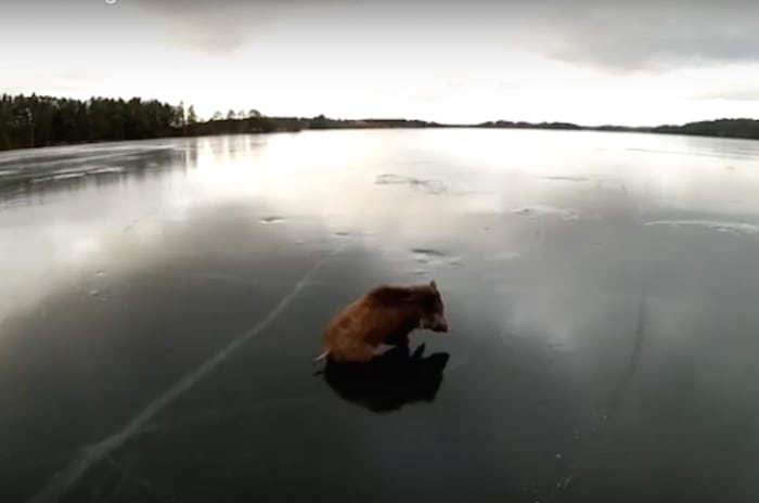 Svenske curling-spillere kom 4 vildsvin til undsætning, da de i bedste bambi-stil ikke kunne komme ud af stedet.
