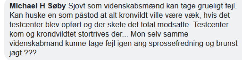 Der står ikke noget om: … at alt kronvildt ville være væk, hvis det testcenter blev opført ...